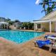 Apartmán v Fairway Terrace F-107 zahrnuje 2 ložnice, 2 koupelny, ložní prádlo, ručníky, satelitní TV, jídelní kout a plně vybavenou kuchyň. Z balkonu ubytování ubytování se otevírá výhled do zahrady. Koupelna je vybavená vanou nebo sprchou, vířivkou a fénem.