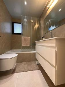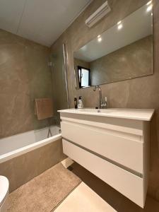 El apartamento tiene 3 dormitorios, una sala de estar con TV de pantalla plana, una cocina equipada y 2 baños con bidet y bañera o ducha.