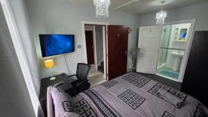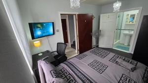 This single room has a desk, a terrace, a quiet street view and a shared bathroom. The unit has 1 bed.