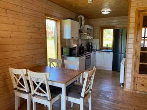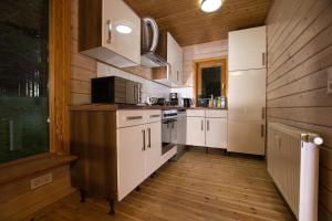 La casa vacanze di Feriendorf Blauvogel Blauvogel 062 include 2 camere da letto, soggiorno, bagno con doccia e cucina con utensili, frigo e macchina da caffè.