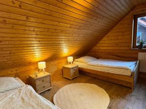 W domu wakacyjnym zapewniono kilka sypialni (2), kuchnię z pełnym wyposażeniem, w tym lodówką oraz zmywarką, a także łazienkę (1) z prysznicem.