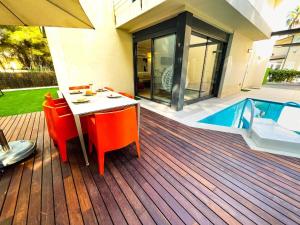 Guests will find a stovetop, a refrigerator, a dishwasher and an oven in the well-equipped kitchenette. The holiday home also offers a barbecue. The spacious holiday home provides air conditioning, a washing machine, as well as a private bathroom featuring a shower and a hairdryer.