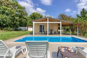 The holiday home offers air conditioning, a coffee machine, as well as a private bathroom featuring a shower and a hairdryer. Guests will find a stovetop, a refrigerator, a dishwasher and an oven in the kitchenette. The holiday home also has a barbecue. The holiday home features heating.