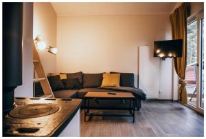 Questo appartamento con terrazza e vista sul lago presenta 2 camere da letto, un soggiorno, una TV a schermo piatto, un angolo cottura con frigorifero e lavastoviglie e 1 bagno con doccia. Presso Ferienhaus in See nähe la dotazione include lenzuola e asciugamani.