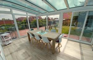 Boasting a private entrance, this holiday home includes 1 living room, 3 separate bedrooms and 2 bathrooms with a walk-in shower and a bath. In the kitchenette, guests will find a refrigerator, a dishwasher, kitchenware and a toaster. Featuring a terrace with garden views, this holiday home also offers a washing machine and a flat-screen TV. The unit has 4 beds.