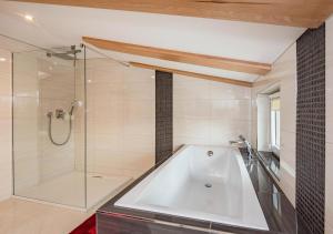 Boasting a private entrance, this air-conditioned holiday home includes 1 living room, 2 separate bedrooms and 2 bathrooms with a walk-in shower and a bath. In the well-equipped kitchen, guests will find a stovetop, a refrigerator, a dishwasher and kitchenware. Featuring a terrace with garden views, this holiday home also offers a coffee machine and a flat-screen TV with streaming services. V této ubytovací jednotce se nachází 2 postele.