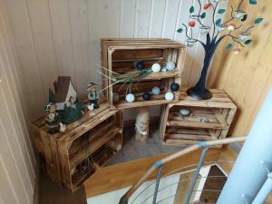 Cette maison de vacances comporte 2 chambres, une kitchenette avec un réfrigérateur et un lave-vaisselle, ainsi que 1 salle de bains avec une baignoire ou une douche et un sèche-cheveux. Ferienhaus Landlust - b69076 fournit des serviettes et du linge de lit moyennant un supplément.