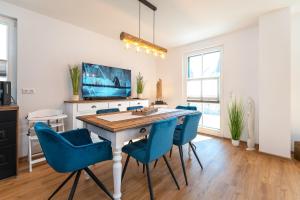 W domu wakacyjnym zapewniono taras, kilka sypialni (2), salon z telewizorem z płaskim ekranem, aneks kuchenny ze standardowym wyposażeniem, takim jak lodówka i zmywarka, a także kilka łazienek (2) z prysznicem. Obiekt Ferienhaus Schmusedom oferuje widok na ogród. W domu wakacyjnym dla Gości przygotowano ręczniki i pościel.