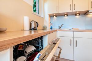 Boasting a private entrance, this holiday home features 1 living room, 2 separate bedrooms and 1 bathroom with a bath and a shower. Guests will find a stovetop, a refrigerator, a dishwasher and kitchenware in the well-equipped kitchen. The holiday home also comes with a barbecue. The holiday home features a washing machine, a coffee machine, a high chair for children as well as a terrace with garden views. The unit has 4 beds.