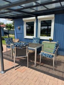 Dieses Ferienhaus mit Klimaanlage besteht aus 1 Schlafzimmer, einem Wohnzimmer, einer voll ausgestatteten Küchenzeile mit einem Kühlschrank und einer Kaffeemaschine sowie 1 Badezimmer mit einer Dusche. In diesem Ferienhaus werden Handtücher und Bettwäsche angeboten.