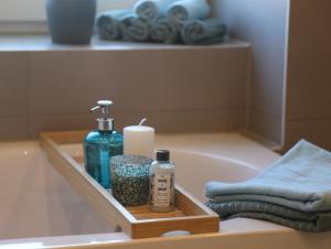 This spacious holiday home includes 1 living room, 4 separate bedrooms and 1 bathroom with a walk-in shower and a bath. In the well-equipped kitchen, guests will find a stovetop, a refrigerator, a dishwasher and kitchenware. Boasting a terrace with garden views, this holiday home also offers a private entrance and a flat-screen TV. V této ubytovací jednotce se nachází 7 postelí.