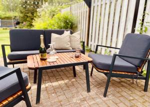 Pokoje: 1The fireplace is the standout feature of this holiday home. Boasting a private entrance, this air-conditioned holiday home comes with 1 living room, 2 separate bedrooms and 1 bathroom with a walk-in shower and a hairdryer. Guests will find a stovetop, a refrigerator, a dishwasher and kitchenware in the well-equipped kitchen. The holiday home also includes a barbecue. Featuring a terrace with garden views, this holiday home also features a tea and coffee maker and a flat-screen TV. V této ubytovací jednotce se nachází 3 postele.