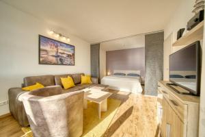 Questo appartamento con balcone e vista sul lago offre 1 camera da letto, un soggiorno, una TV a schermo piatto, un angolo cottura con frigorifero e lavastoviglie e 1 bagno con doccia.