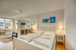 Apartmán v Ferienpark - Haus C, App 0C0606 zahrnuje 1 ložnici, obývací pokoj, 1 koupelnu a plně vybavený kuchyňský kout s lednicí a myčkou. Koupelna je vybavená sprchou.