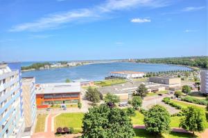 Ferienpark - Haus E, App 0E1103 se může pochlubit výhledem na moře a poskytuje ubytování s balkonem a kávovarem. Pláž Heiligenhafen se nachází přibližně 600 metrů odtud. V tomto apartmánu s výhledem na jezero je dostupné bezplatné Wi-Fi.