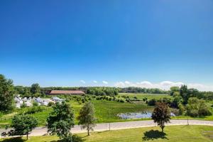 Questo appartamento con balcone e vista sul lago presenta 1 camera da letto, un soggiorno, una TV a schermo piatto, un angolo cottura con frigorifero e lavastoviglie e 1 bagno con doccia.