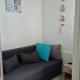 Questo appartamento con balcone e vista sul mare presenta 1 camera da letto, un soggiorno, una TV a schermo piatto, una cucina con frigorifero e lavastoviglie e 1 bagno con doccia.