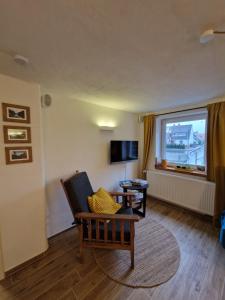 Questo appartamento con 1 camera da letto dispone di un soggiorno con TV a schermo piatto, un angolo cottura con utensili, frigorifero e piano cottura, e 1 bagno con doccia. Presso Ferienwohnung by Thomas Extertal la dotazione include lenzuola e asciugamani.