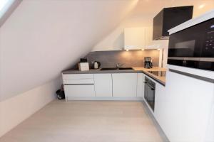 Questo appartamento prevede 1 camera da letto, una cucina con frigorifero e lavastoviglie e 1 bagno con doccia e asciugacapelli. La dotazione di Ferienwohnung mit Meerblick und Gartennutzung - Haus Inselwind FeWo MEERsicht include una TV.