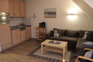 L'angolo cottura presso Ferienwohnung mit Seeblick und Schwimmbadnutzung in Cuxhaven include frigorifero, lavastoviglie, forno, macchina da caffè e bollitore.