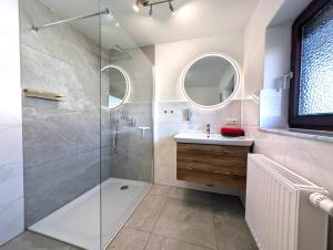 Questo appartamento con balcone e vista sulla montagna presenta 2 camere da letto, un soggiorno, una TV a schermo piatto, una cucina con frigorifero e lavastoviglie e 2 bagni con doccia. Presso Ferienwohnung Alpenglut la dotazione include lenzuola e asciugamani.