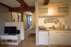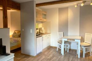 Cet appartement se compose de 1 chambre, d'un salon, d'une kitchenette entièrement équipée avec un réfrigérateur et une machine à café, ainsi que de 1 salle de bains avec une douche et un sèche-cheveux. Le linge de lit et les serviettes sont mis à disposition par Ferienwohnung Alte Gärtnerei.