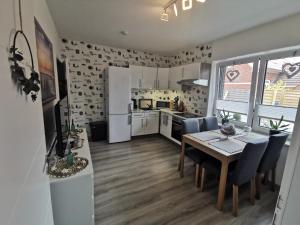 Questo appartamento offre 2 camere da letto, una TV a schermo piatto con canali satellitari, una cucina con frigorifero e forno, una lavatrice e 1 bagno con doccia. Asciugamani e lenzuola sono inclusi nei servizi di Ferienwohnung am Dock.