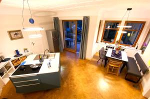 El apartamento cuenta con terraza y vistas a la ciudad, y dispone de 4 dormitorios, una sala de estar, TV de pantalla plana, una cocina equipada con nevera y lavavajillas, y 2 baños con ducha. El apartamento Ferienwohnung Blaues Haus dispone de toallas y ropa de cama.