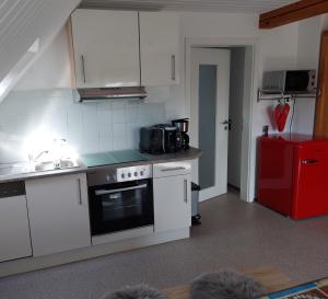 Apartament w obiekcie oferuje taras, 2 sypialnie, salon z telewizorem z płaskim ekranem, standardowo wyposażony aneks kuchenny z lodówką i zmywarką oraz łazienkę z prysznicem. Z okien obiektu Ferienwohnung Brombachsee Ankerplatz mit Sauna bei Juliane und Klaus można podziwiać góry.