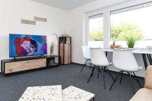 Apartmán Ferienwohnung Deich in Sicht nabízí 2 ložnice, 1 koupelnu, plně vybavenou kuchyň s jídelním koutem a lednicí a obývací část s TV s plochou obrazovkou. Koupelna je vybavená sprchou.
