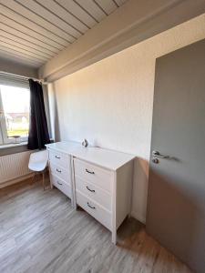 Cet appartement à l'établissement comprend une chambre, une cuisine équipée avec réfrigérateur et lave-vaisselle, et une salle de bains avec douche et sèche-cheveux. Vous trouverez des serviettes et du linge de lit à Ferienwohnung Deichbude Pellworm.