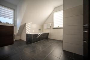 Apartmán má 3 ložnice, 2 koupelny, ložní prádlo, ručníky, TV s plochou obrazovkou, kuchyňský kout s kompletním vybavením a balkon s výhledem na město. Koupelna v ubytování Ferienwohnung Eichenweg disponuje vanou i sprchou.