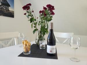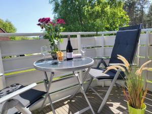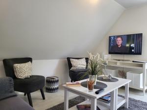 Diese Ferienwohnung mit einem Balkon und Gartenblick bietet 2 Schlafzimmer, ein Wohnzimmer, einen TV, eine gut ausgestattete Küche mit einem Kühlschrank und einem Ofen sowie 1 Badezimmer mit einer Dusche.