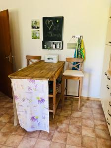 Apartament posiada taras, dwie sypialnie, salon z TV, łazienkę z prysznicem oraz kuchnię z lodówką i zmywarką. Z okien obiektu Ferienwohnung Kristin mit Bergblick, grossem Garten und Grill można podziwiać góry. Ręczniki i pościel są dostępne w apartamencie.
