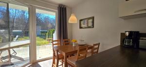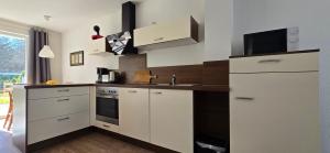 Apartament Ferienwohnung KWi 32 EG mieści sypialnię, salon, łazienkę z prysznicem oraz kuchnię z lodówką i ekspresem. Goście mają do dyspozycji telewizor.