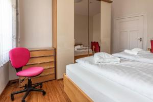 This spacious apartment consists of a kitchen, a seating area, 2 separate bedrooms and 1 bathroom with a shower and a hairdryer. The well-equipped kitchen features a stovetop, a refrigerator, kitchenware and an oven. The apartment provides a TV with cable channels, a coffee machine, a wardrobe, a high chair for children as well as garden views. The unit offers 3 beds.