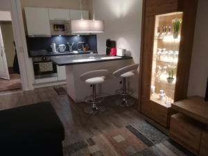 Apartmán má obývací prostor s TV s plochou obrazovkou. V kuchyni najdete lednici, myčku nádobí a troubu a v koupelně je sprcha, fén a pantofle.