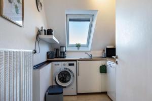 Questo appartamento presenta 1 camera da letto, una TV con canali satellitari, una cucina con frigorifero e lavastoviglie, una lavatrice e 1 bagno con vasca da bagno. Lenzuola e asciugamani sono a vostra disposizione presso Ferienwohnung Moin.
