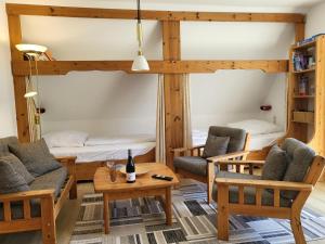 This apartment is comprised of 1 living room, 2 separate bedrooms and 1 bathroom with a shower and a hairdryer. Guests can make meals in the kitchen that is fitted with a stovetop, a refrigerator, kitchenware and a toaster. Featuring a balcony with garden views, this apartment also offers a washing machine and a TV. The unit offers 5 beds.
