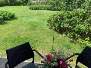 Disposant d’une terrasse et offrant une vue sur le jardin, cet appartement comprend 1 chambre, un salon, une télévision, une cuisine équipée avec un réfrigérateur et un four, ainsi que 1 salle de bains avec une douche.