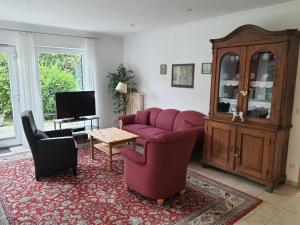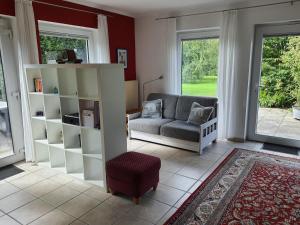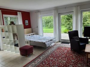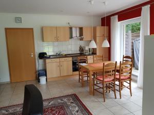 Dom wakacyjny w obiekcie obejmuje taras, sypialnię, salon z telewizorem z płaskim ekranem, wyposażoną kuchnię z lodówką i piekarnikiem oraz łazienkę z prysznicem. Obiekt oferuje widok na ogród. W domu wakacyjnym Ferienwohnung Pewsum dla Gości przygotowano ręczniki i pościel.