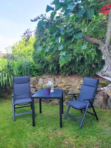 Die Ferienwohnung Ferienwohnung Rote Tür - Landleben pur! mit Terrasse und Gartenblick umfasst 1 Schlafzimmer, ein Wohnzimmer, Flachbild-TV, eine Küche mit Kühlschrank und Spülmaschine sowie 1 Bad mit Dusche. In dieser Ferienwohnung werden Handtücher und Bettwäsche zur Verfügung gestellt.