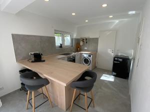 Diese Ferienwohnung befindet sich im Erdgeschoss und ist ausgestattet mit 1 Schlafzimmer, einem Flachbild-TV und einer voll ausgestatteten Küche, die den Gästen einen Kühlschrank, einen Geschirrspüler, eine Waschmaschine, einen Ofen sowie eine Herdplatte bietet. In dieser Ferienwohnung werden Handtücher und Bettwäsche zur Verfügung gestellt.