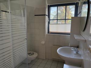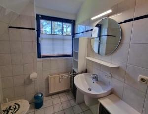 Tento apartmán má 3 ložnice, 2 koupelny, kuchyňský kout s kompletním vybavením včetně jídelní části a lednice a obývací prostor s TV s plochou obrazovkou. V koupelně ubytování Ferienwohnung Seeigel nechybí sprcha ani fén.