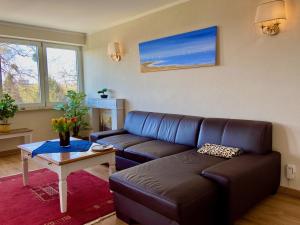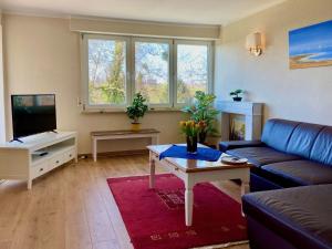 Apartament w obiekcie posiada balkon, 2 sypialnie, salon z telewizorem, standardowo wyposażoną kuchnię ze zmywarką i lodówką oraz 2 łazienki z prysznicem. Z okien obiektu można podziwiać góry. Ręczniki i pościel są dostępne w apartamencie Ferienwohnung Weinberg-Idyll - Traumhafter Blick über Weinberge auf den Bodensee.
