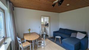 El apartamento Ferienwohnung Wiesenblümle consta de 1 dormitorio, sala de estar, cocina equipada con nevera y cafetera, y 1 baño con ducha y artículos de aseo gratis. El apartamento el alojamiento dispone de toallas y ropa de cama.