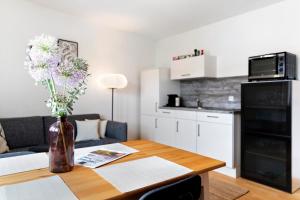 Cet appartement comprend 1 chambre, une télévision avec les chaînes du câble, une cuisine équipée avec un réfrigérateur et un lave-vaisselle, ainsi que 1 salle de bains avec une douche. Vous trouverez des serviettes et du linge de lit à Ferienwohnung Zola.