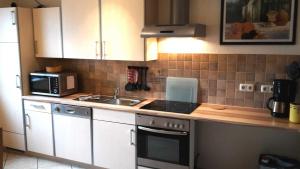 Kuchyně v Ferienwohnungen im Ostseebad Binz je vybavena lednicí, myčkou, troubou a kávovarem.
