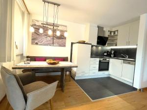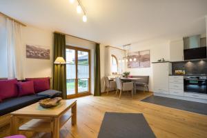 El apartamento cuenta con terraza y vistas a la montaña, y tiene 1 dormitorio, una sala de estar, TV de pantalla plana, una cocina equipada con nevera y lavavajillas, y 1 baño con bañera. El apartamento Ferienwohnungen Alpentraum - Auszeit I dispone de toallas y ropa de cama.
