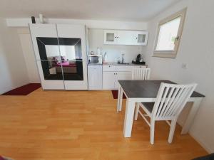 - Small kitchen area,